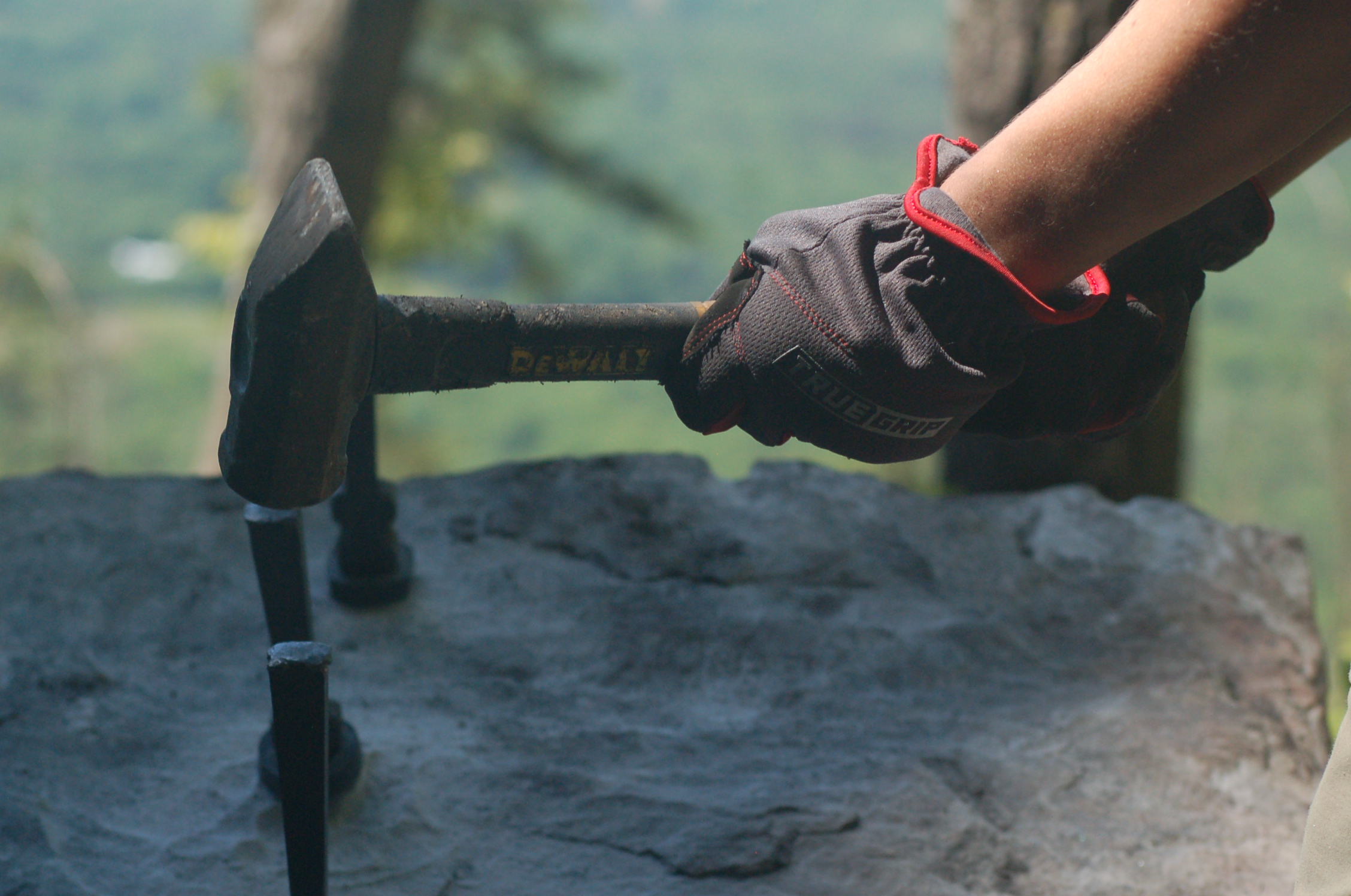 I’ve never been much of a climber, but I like to hang with a bunch. There was a big ol’ hang at Pilot Mountain May 6th and 7th, for the Carolina Climbers Coalition’s NC Climber’s Fest. Early birds got cinnamon rolls whose sourdough starter goes back 100 years, but everyone got a bluebird day to grip and rip some quartz, bust ass mending trails, and learn the basic principles of climbing rocks.